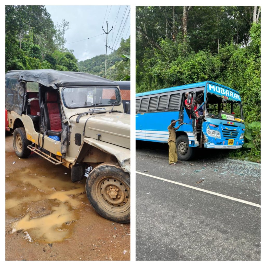 ഇടുക്കി കുമളിയിൽ വാഹനാപകടം : ജീപ്പും ബസും കൂട്ടിയിടിച്ച് മൂന്നുപേർക്ക് പരിക്ക്